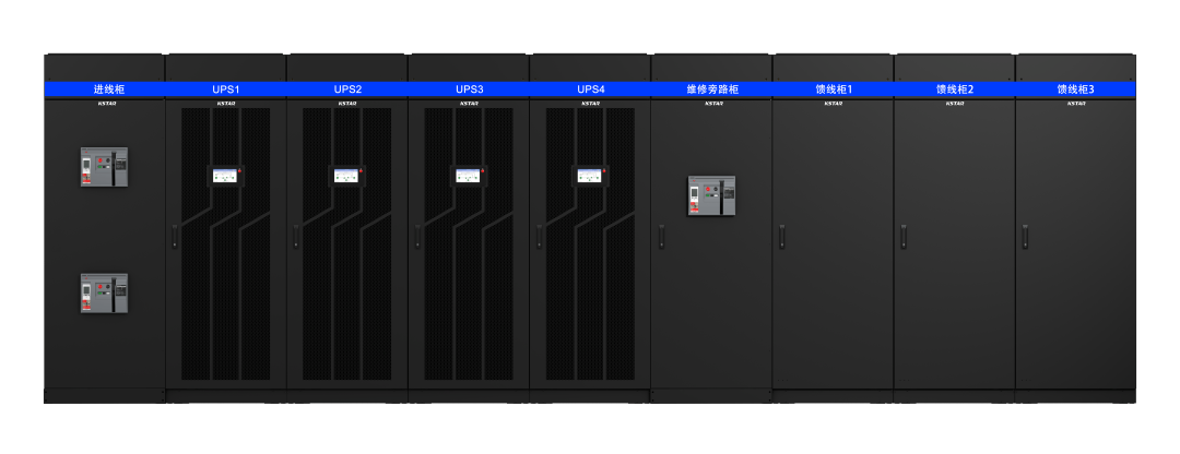 集成了3U高的100kW功率模块UPS,低耗节能;